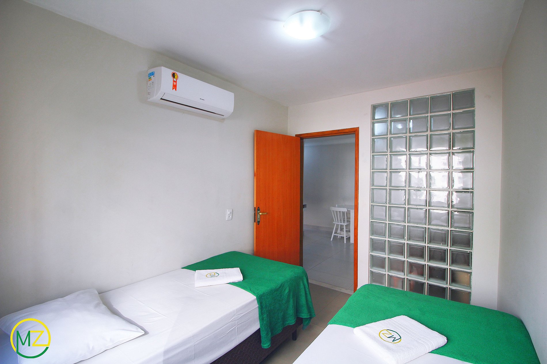 Bedroom 1 with 2 single beds and split air conditioning.