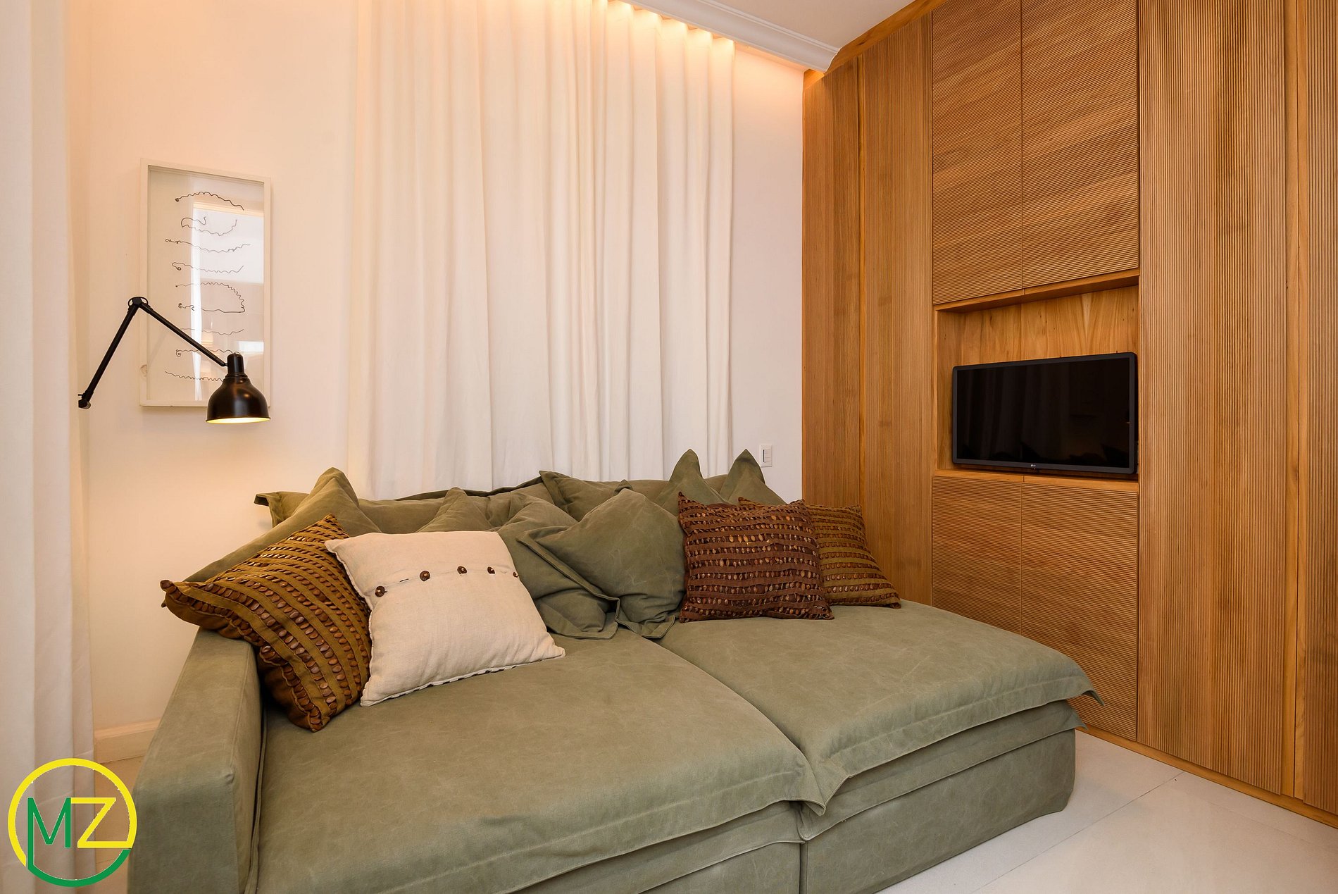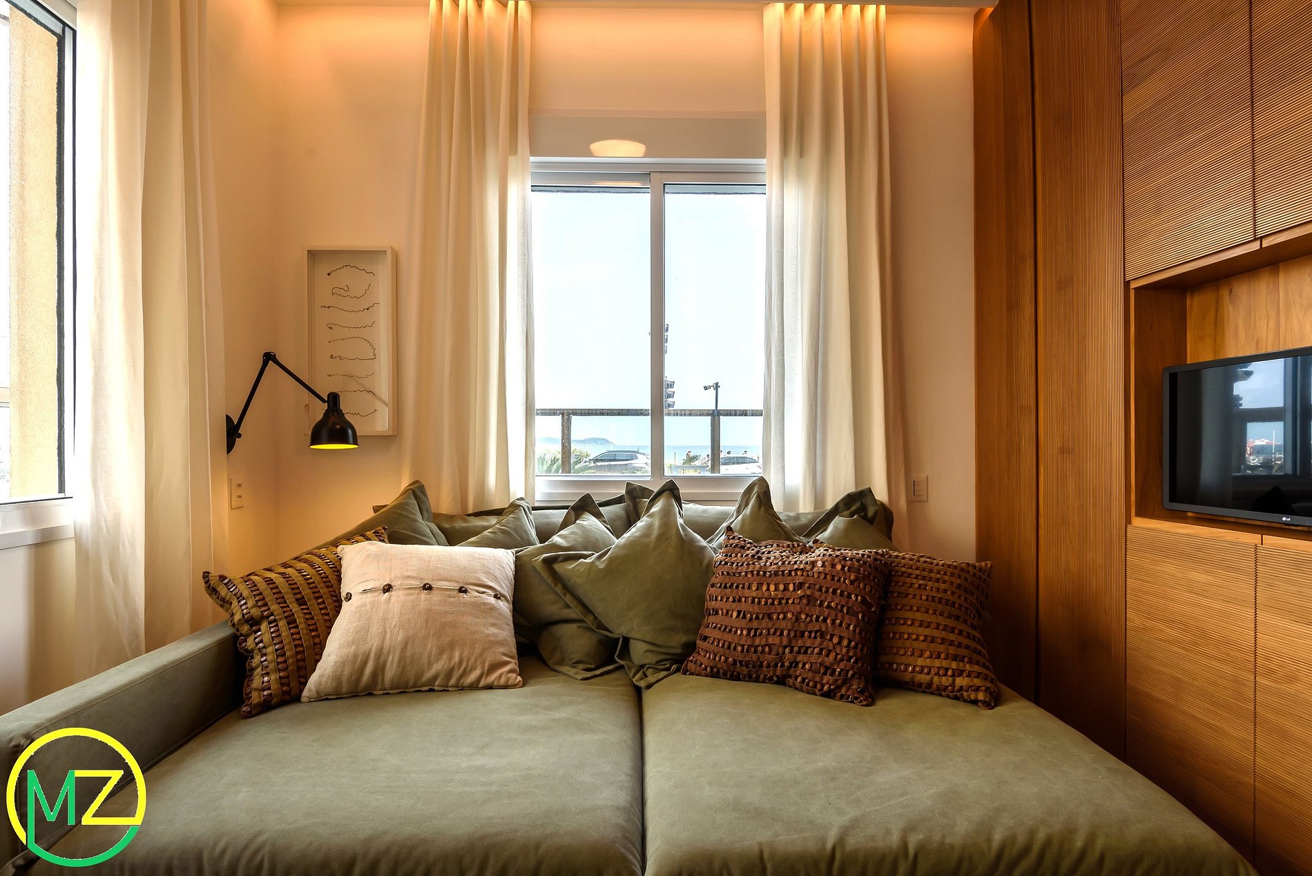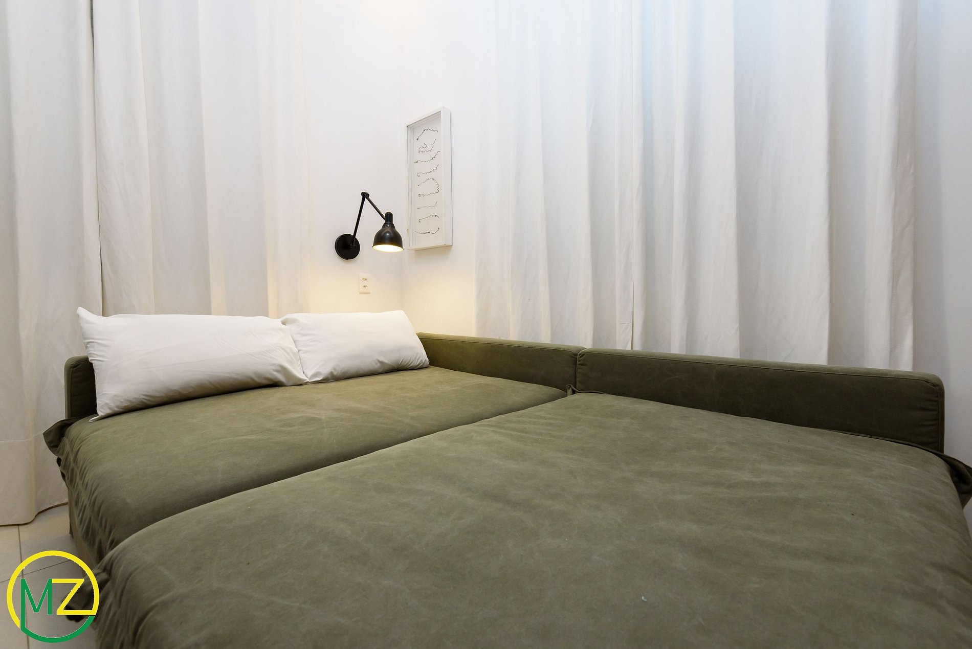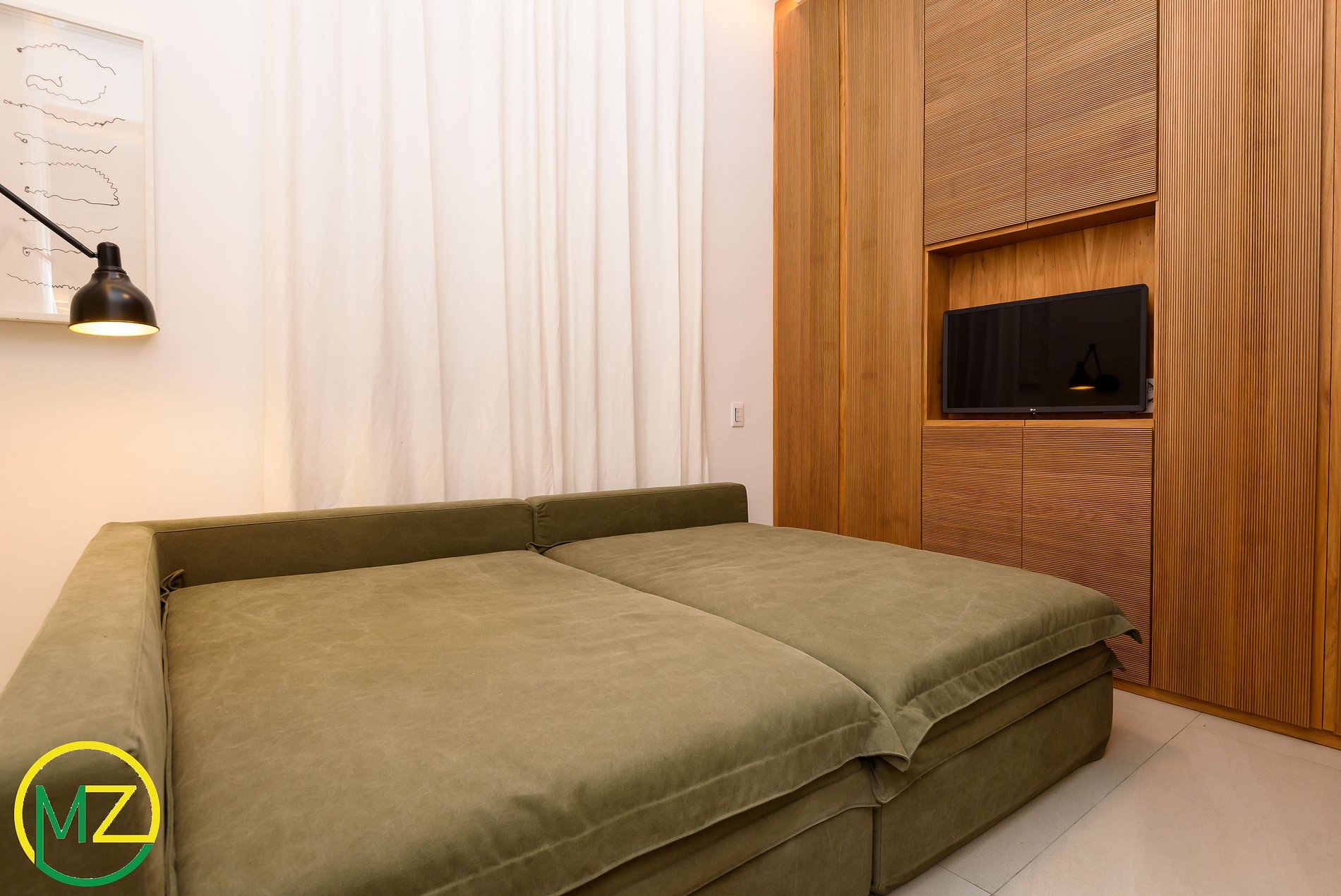 The first bedroom is reversible with the living room and has a comfortable sofa bed, wardrobe, 32-inch SmartTV and split air conditioning. Front view of Ipanema beach.