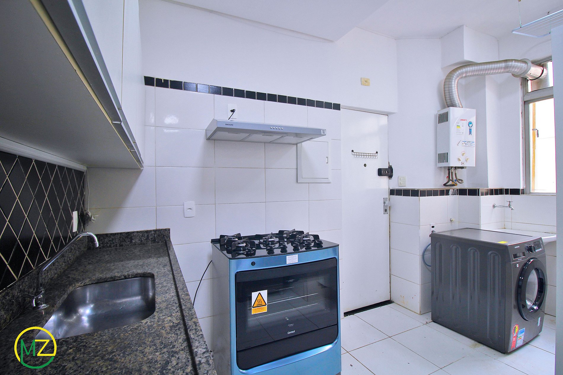 El área de lavandería cuenta con lavadora y tendedero.