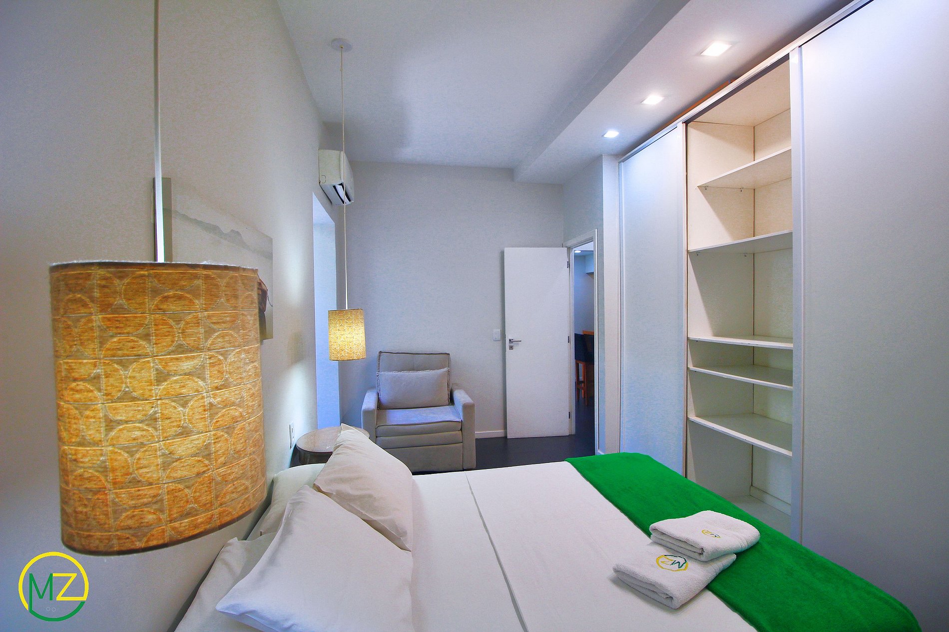 Moderno apartamento de 2 dormitorios para hasta 6 personas en la posta 5 de Copacabana. Vivienda de 70m², distribuidos en salón, dos dormitorios, baño y cocina. Ubicado en el 2do piso de un edificio familiar y seguro con portero 24 horas, a 50 metros de la playa.