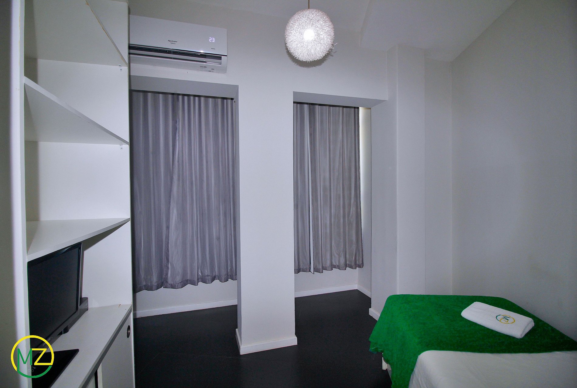 El primer dormitorio está equipado con una cama doble, TV LCD, aire acondicionado split, armarios y ventanas insonorizadas.