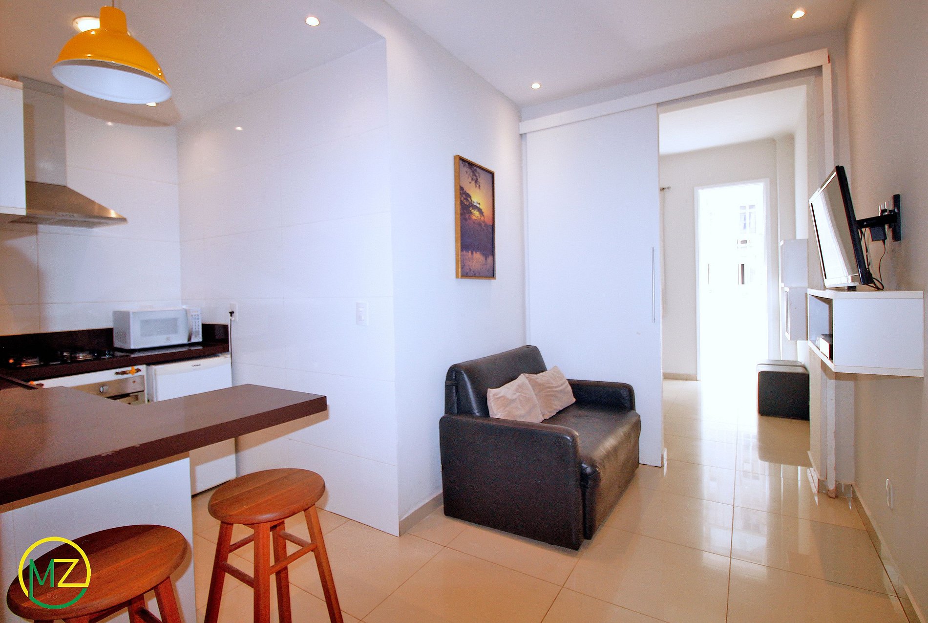 Tranquilo apartamento tipo estudio en el Puesto 3 de Copacabana, ¡a solo dos cuadras de la playa! Este apartamento se encuentra en el tercer piso de un edificio seguro y familiar, con capacidad para hasta 4 personas. Servicio de portería 24 horas.