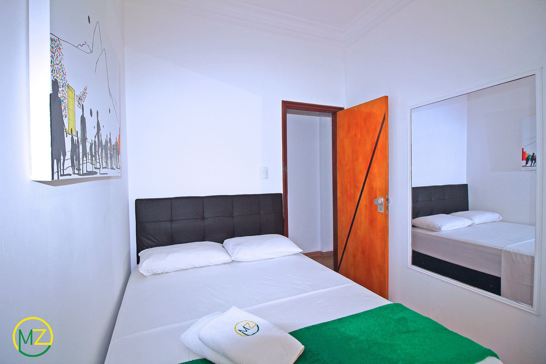 Quarto 3 com 1 cama de casal, sofa-cama de solteiro confortavel, guarda-roupa grande, cortina Roll-on, ventilador de teto e ar condicionado de parede.