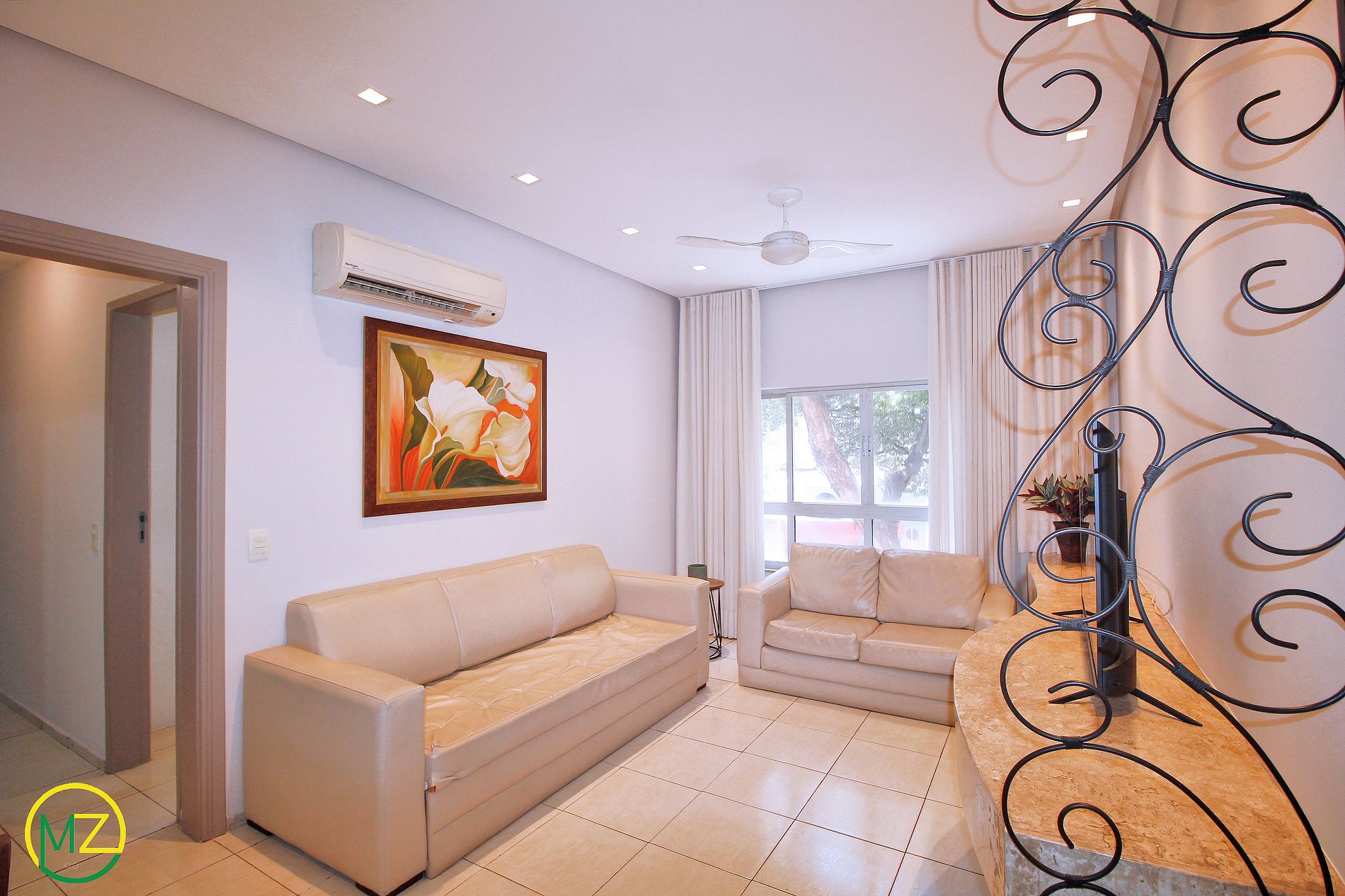 Imóvel de 100m2 dispõe de uma sala com vista para a rua e janelas anti-ruído, 2 sofás, SmartTV, ventilador de teto, ar condicionado split e mesa de jantar com 6 cadeiras. Conecta-se com uma cozinha americana que possue uma geladeira duplex, fogão de 4 bocas com forno, microondas, filtro de agua e todos os utensilios basicos para cozinhar. Na area de serviço tem um tanque e um varal de roupas no teto.