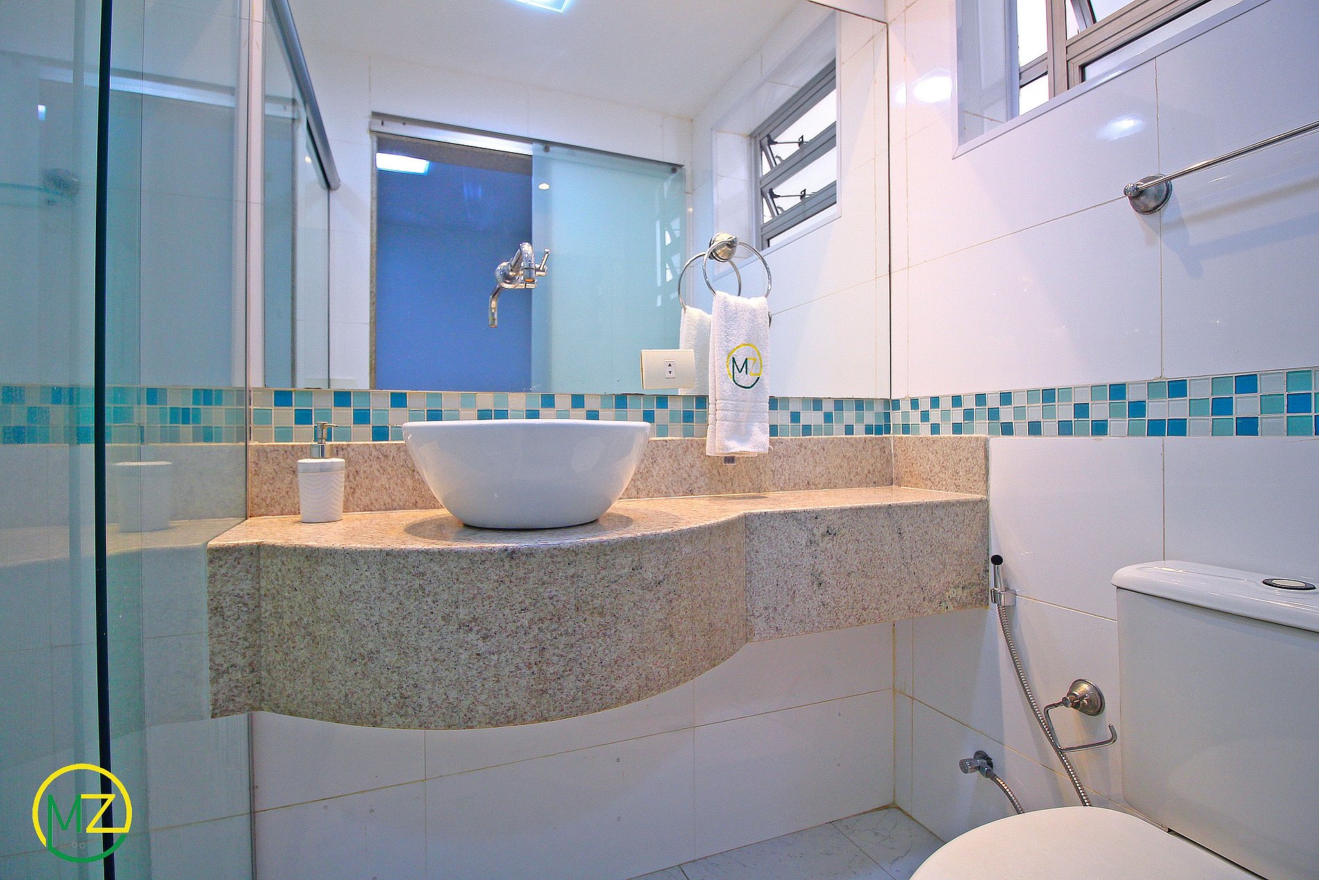 Banheiro social com ducha aquecida a gás para seu maior conforto.