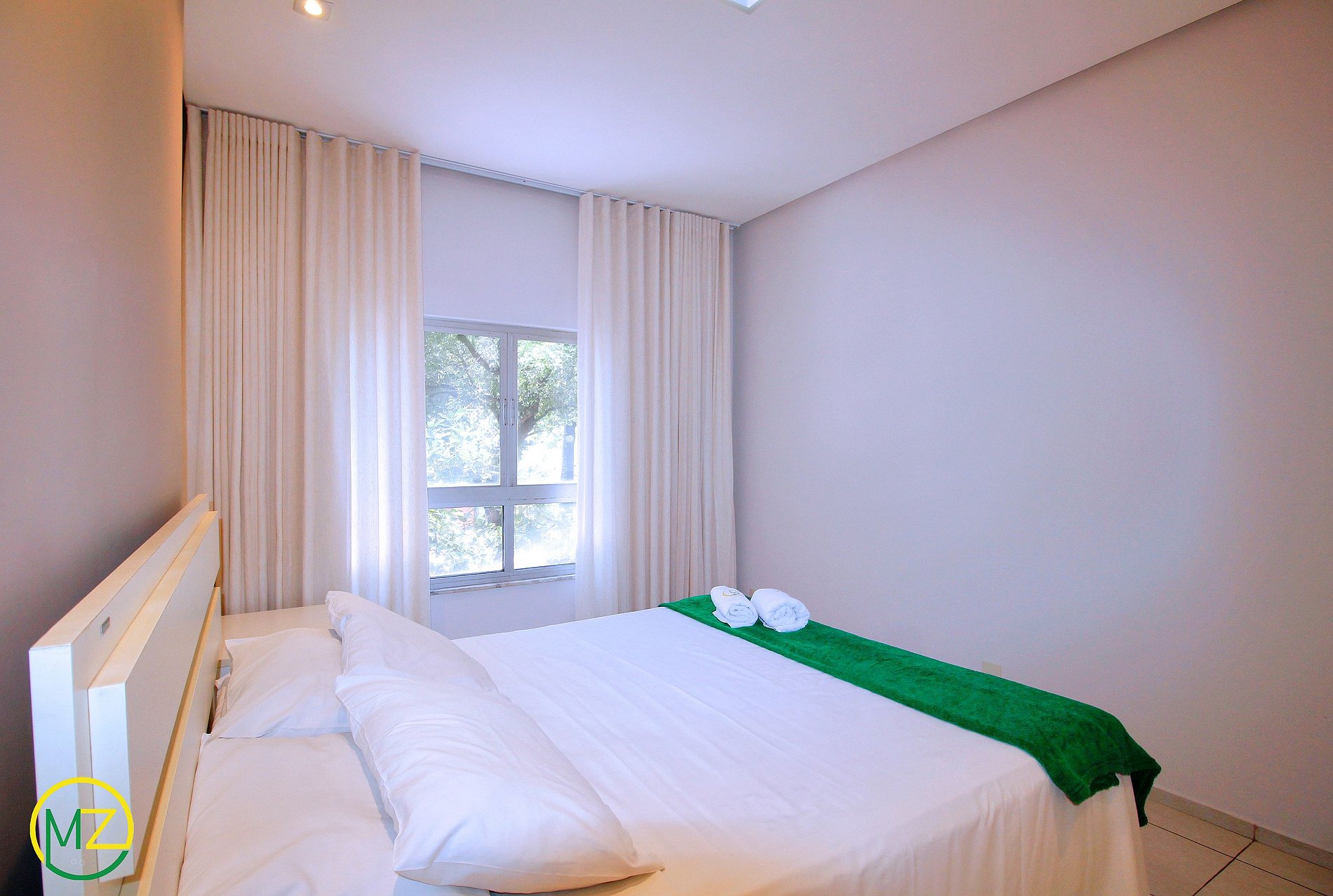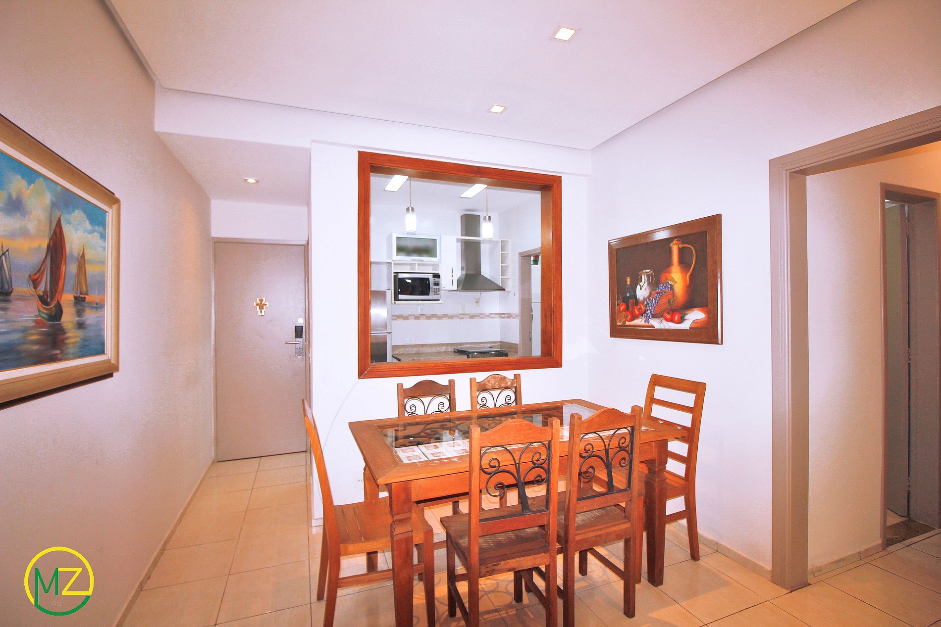 Imóvel de 100m2 dispõe de uma sala com vista para a rua e janelas anti-ruído, 2 sofás, SmartTV, ventilador de teto, ar condicionado split e mesa de jantar com 6 cadeiras. Conecta-se com uma cozinha americana que possue uma geladeira duplex, fogão de 4 bocas com forno, microondas, filtro de agua e todos os utensilios basicos para cozinhar. Na area de serviço tem um tanque e um varal de roupas no teto.