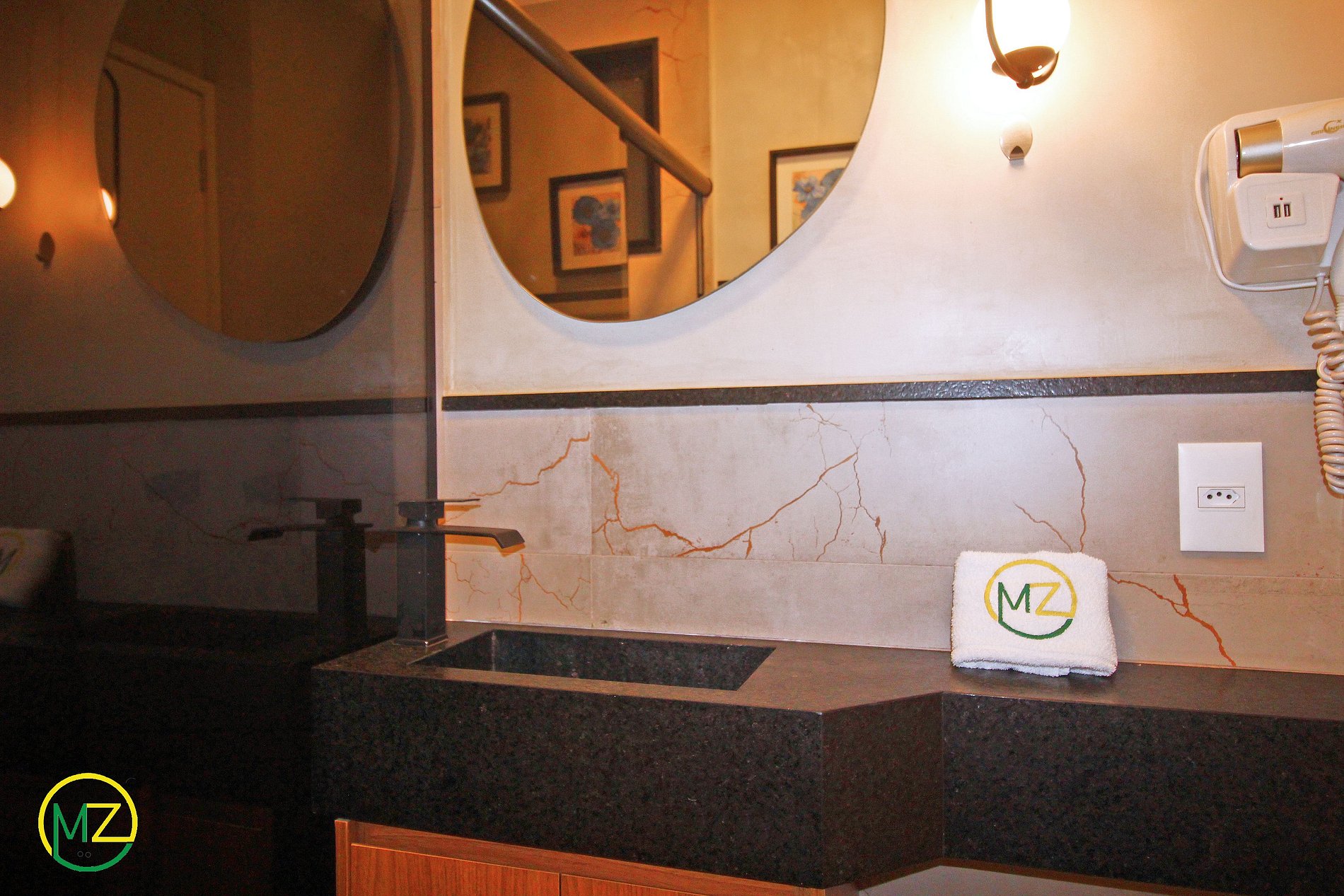 Banheiro social com ducha aquecida à gás para seu maior conforto.