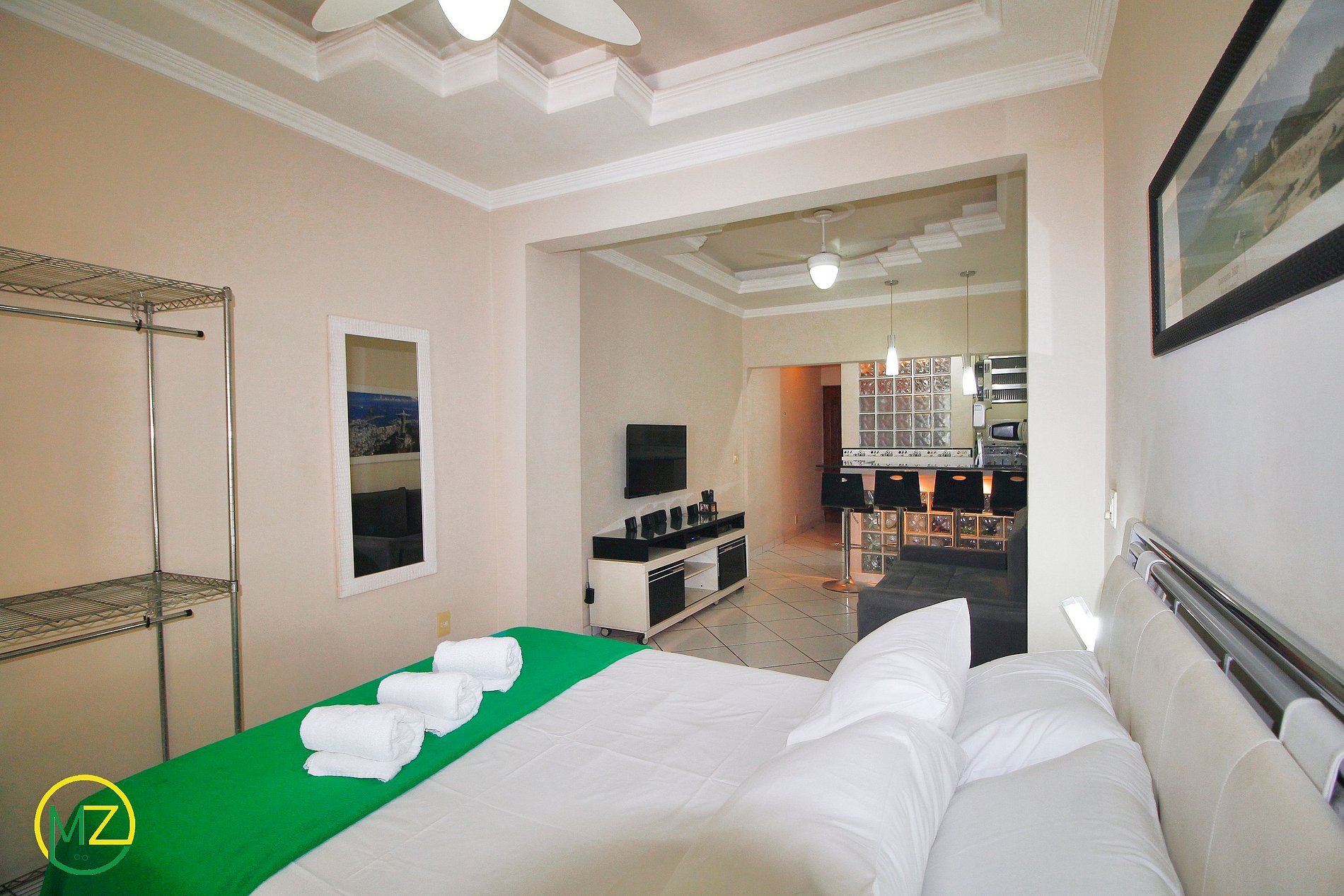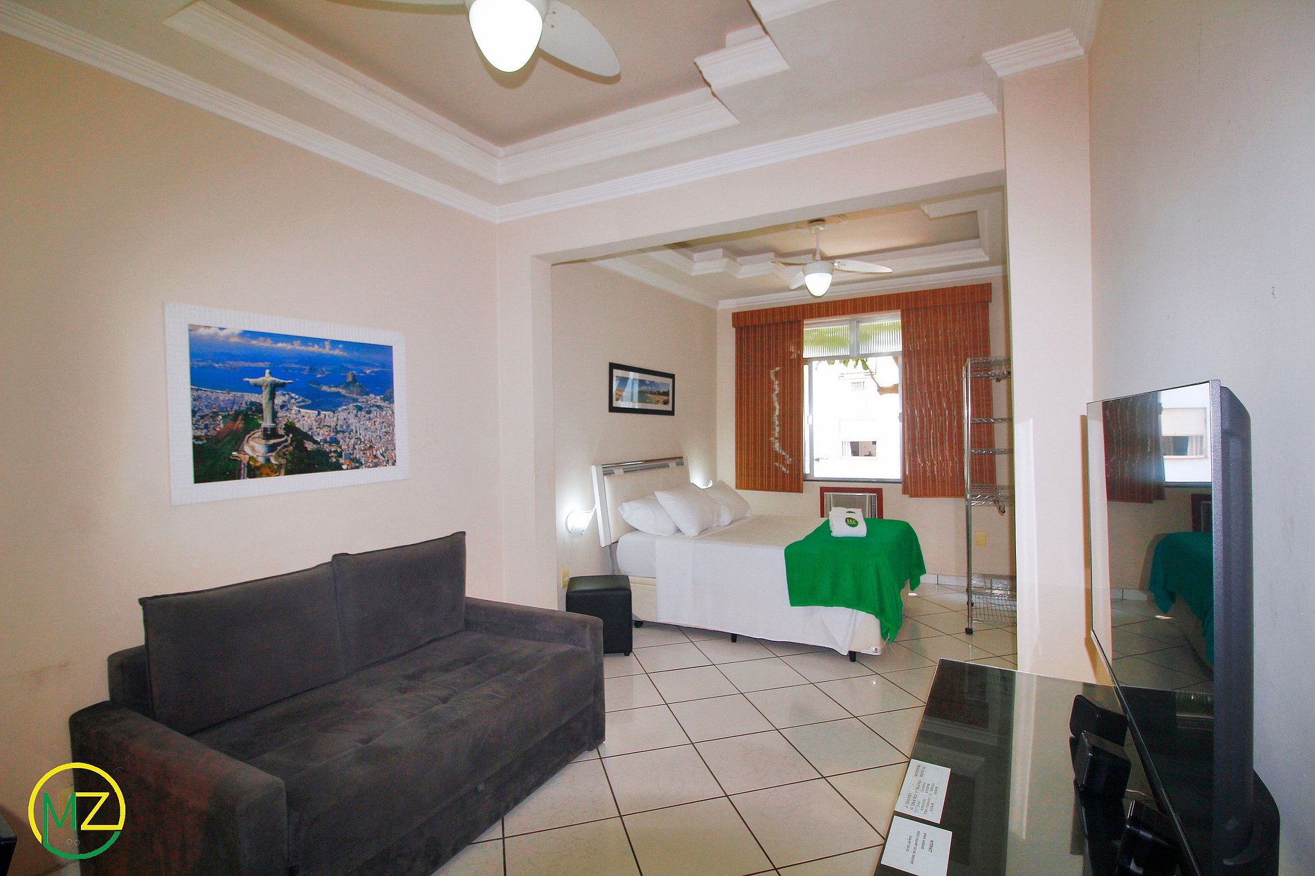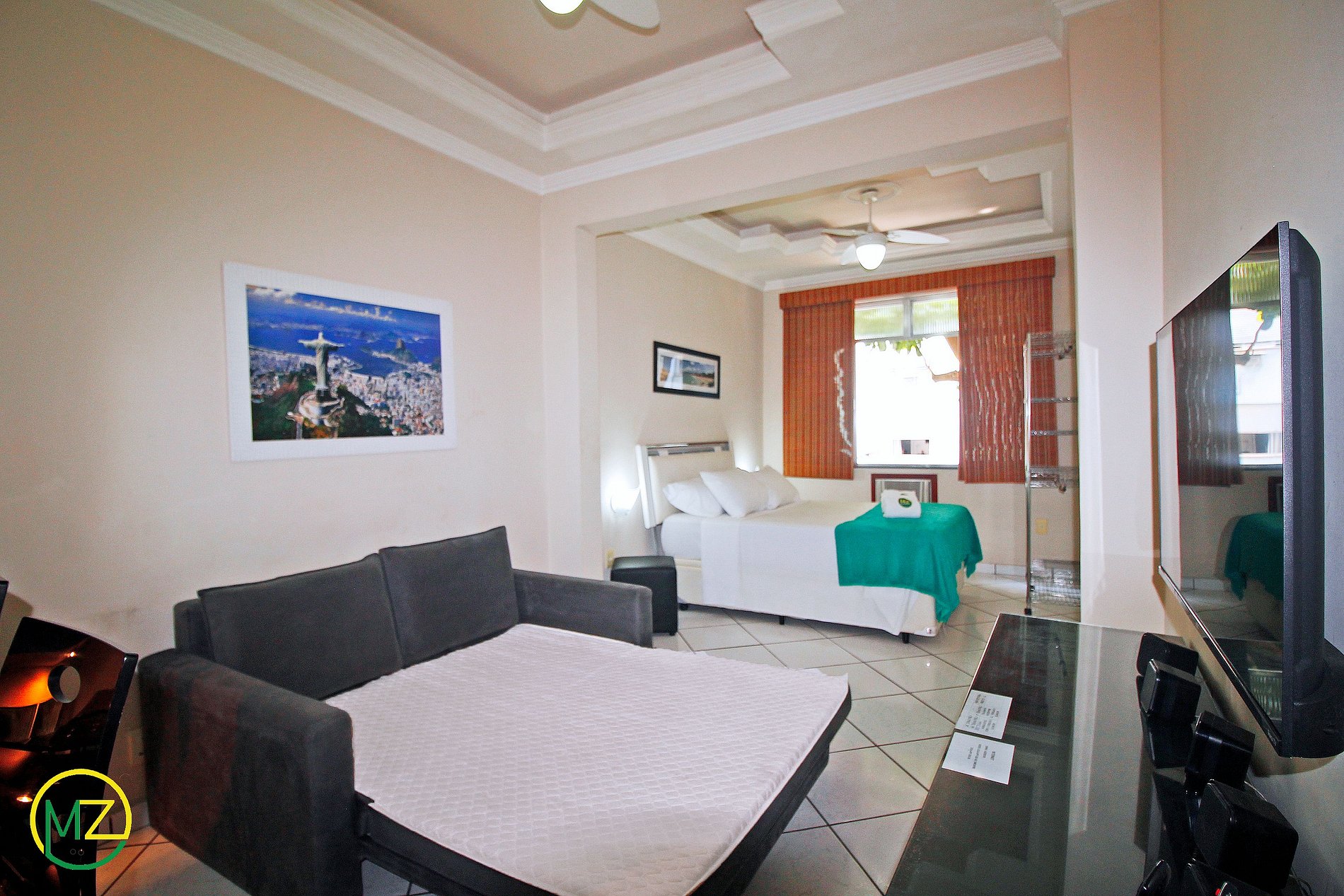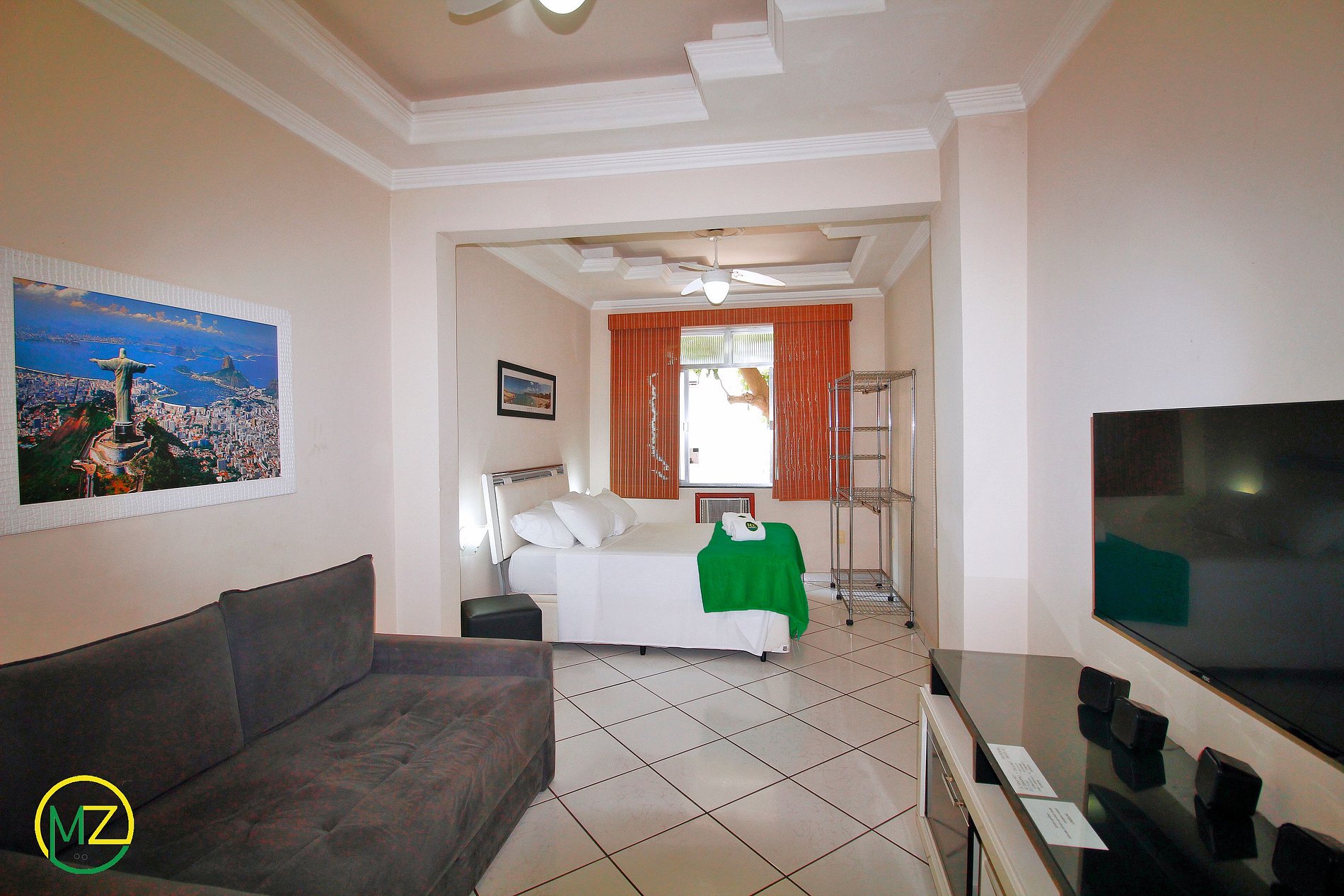 Bom Studio para até 4 pessoas no posto 6. Apenas 200 metros até a famosa praia de Copacabana. O apartamento esta localizado no 3º andar de um prédio bem administrado com portaria 24h e câmeras de segurança. Total infra-estrutura para um turista, tendo ao redor supermercados, caixas eletrônicos, restaurantes e transporte publico. Ótima opção de hospedagem por temporada no Rio para 1 casal com filhos, 2 casais ou solteiros.